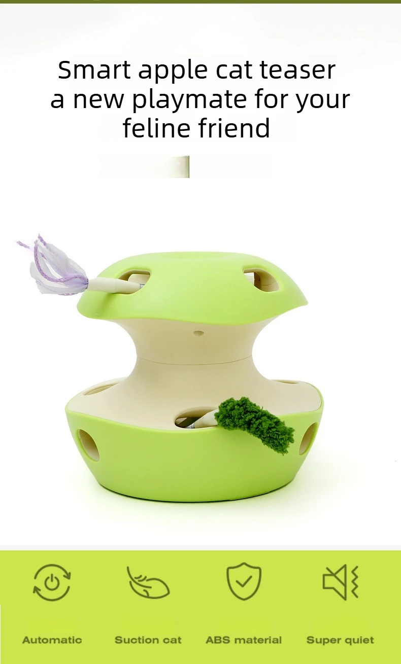 Electric Cat Toy Apple Shaped Self Play Intelligent Cat Turntable Mouse Automatic RotationTease Cat Stick Rechargeable CatSupply