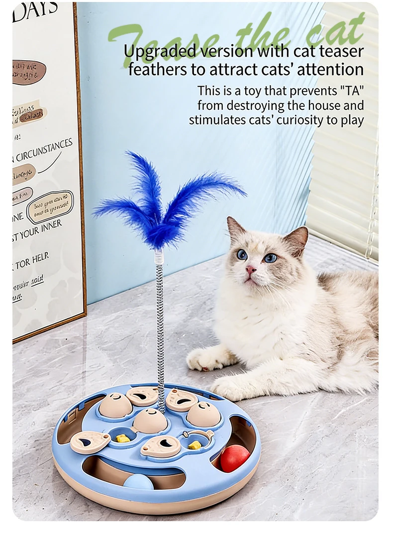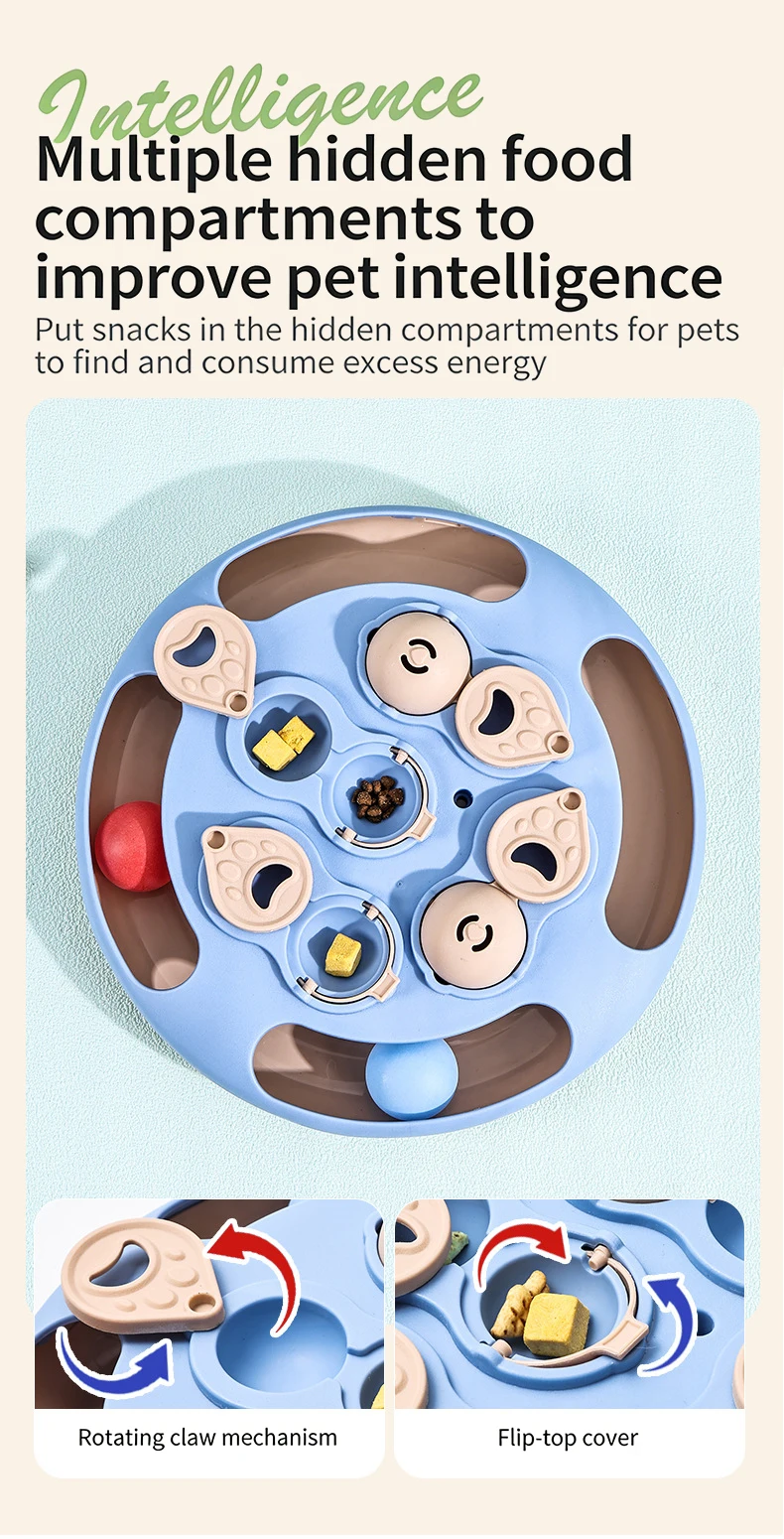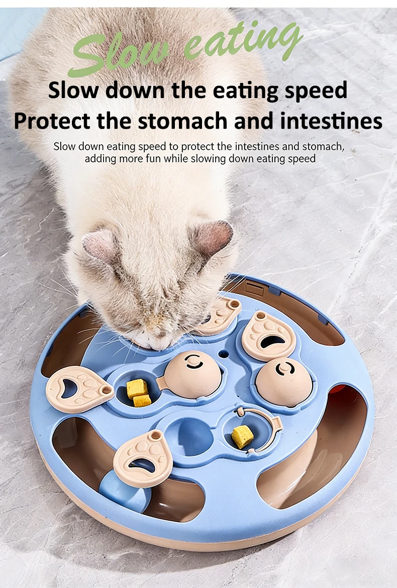 Smart Cat Puzzle Toy Slow Feeder Interactive Turntable Food Dispenser For Indoor Cats Anti-Boredom Pet Training Play Toy